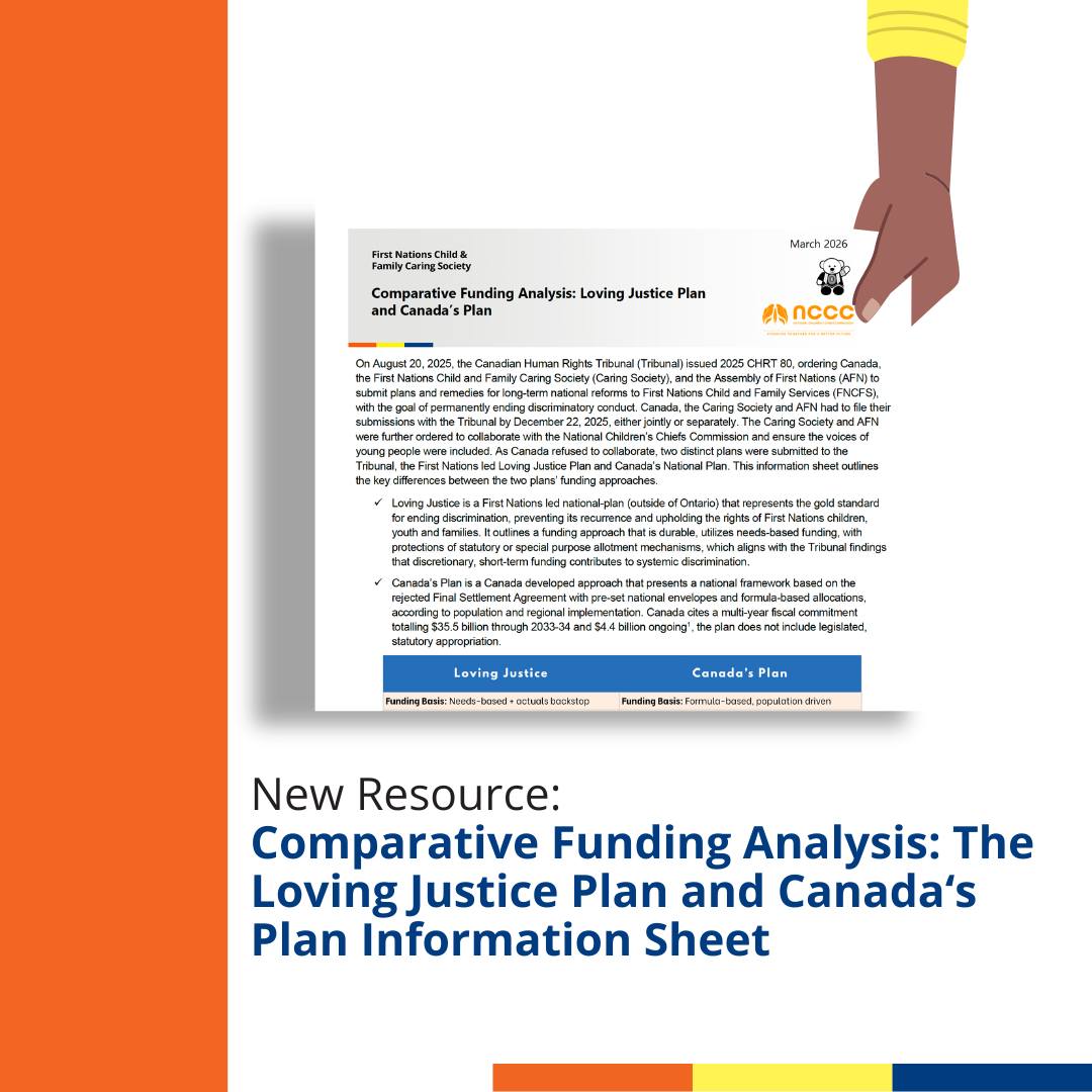 Following national engagement, the Loving Justice Plan was submitted to Tribunal as the First Nations-led designed plan to permanently end Canada’s discrimination in FNCFS. Built from 100+ engagement submissions from leaders, youth, Elders and technical experts, the Loving Justice Plan outlines national minimum standards with enforceable accountability, needs-based funding and First Nations-led governance. Canada also submitted its own plan, leading to two distinct proposals before the Tribunal. The Tribunal has not yet rendered a decision on next steps, including whether it will select one plan, require revisions, or combine elements of the proposals submitted.