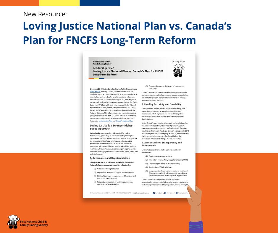 Following national engagement, the Loving Justice Plan was submitted to Tribunal as the First Nations-led designed plan to permanently end Canada’s discrimination in FNCFS. Built from 100+ engagement submissions from leaders, youth, Elders and technical experts, the Loving Justice Plan outlines national minimum standards with enforceable accountability, needs-based funding and First Nations-led governance. Canada also submitted its own plan, leading to two distinct proposals before the Tribunal.